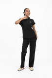 La tenue Talia allie praticité et féminité pour les professionnels de l’esthétique. Sa coupe évasée offre une liberté de mouvement optimale, tandis que le top style polo apporte une touche élégante et professionnelle. Le pantalon cargo évasé complète ce look fonctionnel et moderne, idéal pour travailler avec confort et style toute la journée.